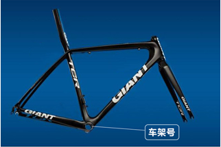 正品捷安特自行车每一辆均有唯一的车架号码,所在位置 为五通下面哦,示意图如下: